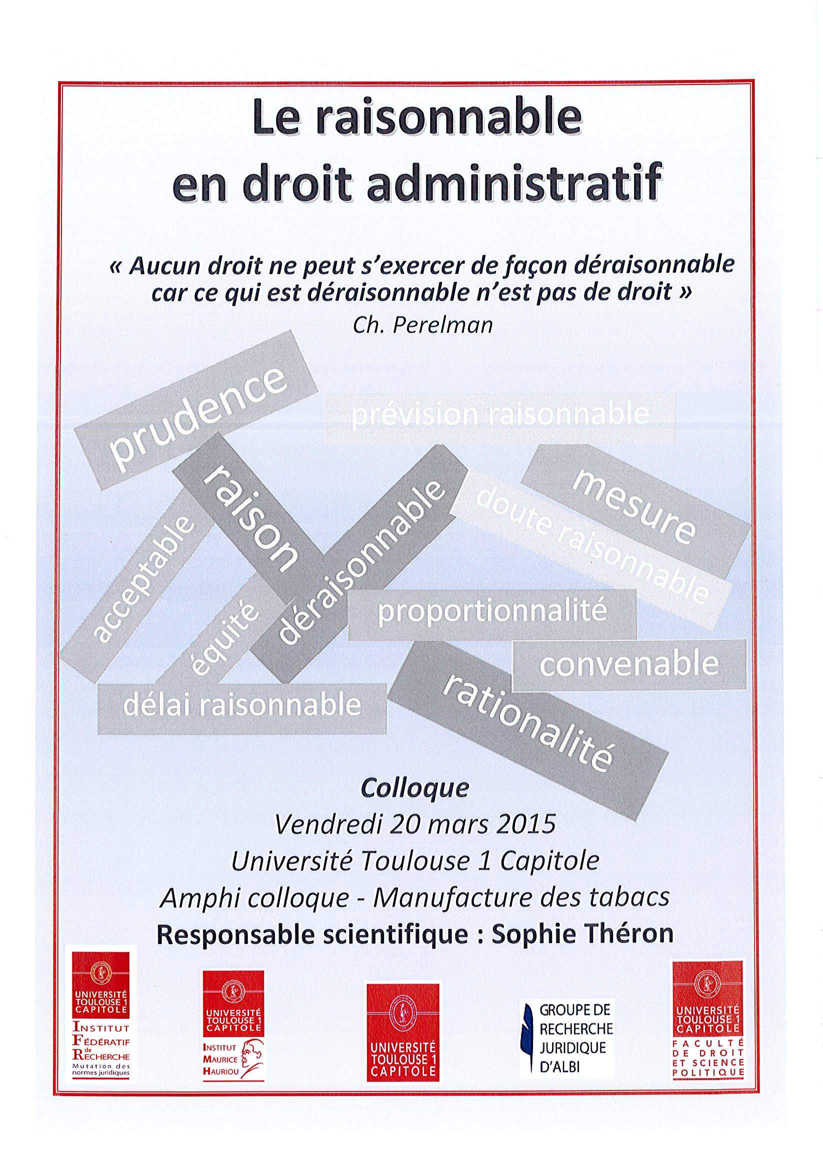 Si le terme de raisonnable est peu usité de manière expresse par le droit positif, l’idée de raisonnable semble sous-jacente à l’action de l’administration mais aussi au procès, à la décision du juge administratif. Ce colloque aura pour objet de le démontrer. Par-là il permettra de s’interroger sur le sens et l’unité éventuelle que peut revêtir le raisonnable. Au-delà des enjeux théoriques, s’intéresser au raisonnable en droit administratif permet de comprendre le sens de l’action administrative : le raisonnable traduit une préoccupation - voire une obligation - que l’on rencontre de manière classique en droit administratif (ainsi l’administration doit appliquer sa règle de manière raisonnable en fonction des circonstances, le juge administratif sanctionne une action déraisonnable et doit statuer dans un délai raisonnable…). De plus, la manière dont la règle de droit est conçue, dont l’action administrative est menée, conduit à se demander si le raisonnable n’est pas devenu une exigence croissante du droit public : les impératifs de précaution face aux différents risques (sanitaires, environnementaux par exemple) ne sont-ils pas un moyen d’intégrer le raisonnable a priori, l’administration ne doit-elle pas ainsi se conduire de manière raisonnable, prudente tel un « bon père de famille » ? voilà, sans prétendre à l’exhaustivité, quelques-unes des interrogations qui guideront cette journée de réflexion.